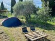 Camper parmi les oliviers en Provence